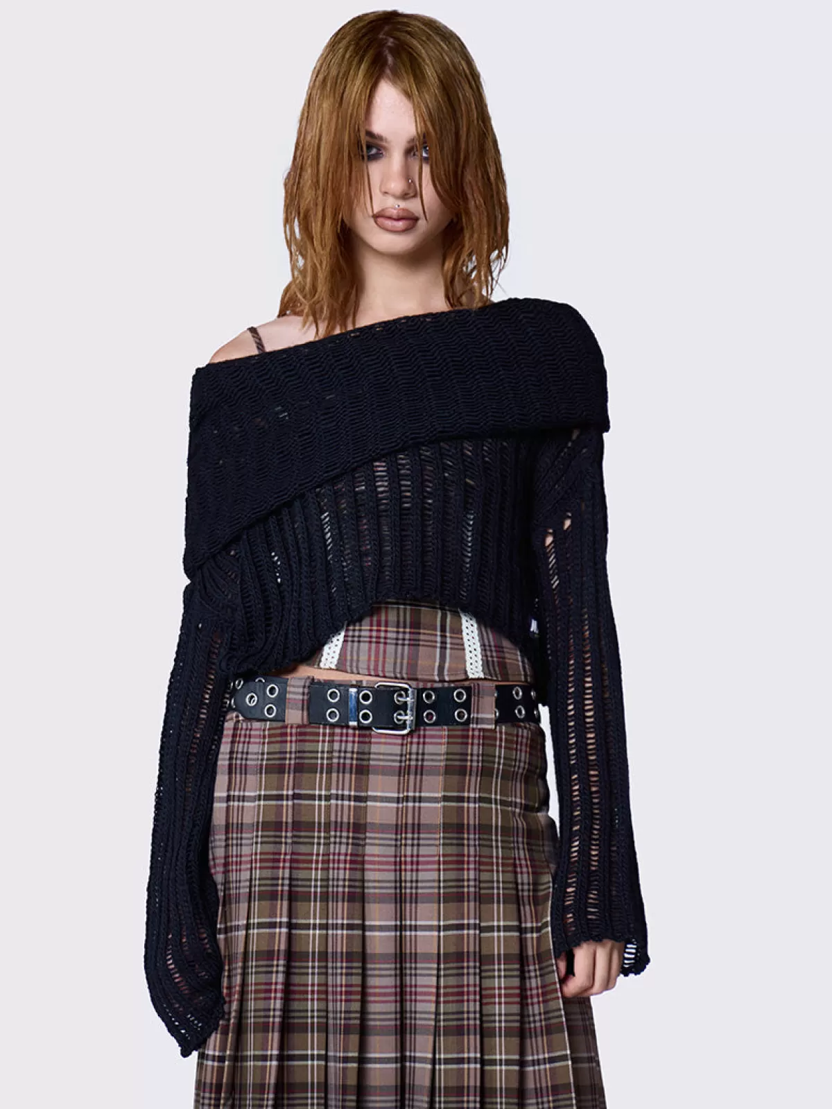Best Minga London Grizela Two Pieces Off Shoulder Knit Jumper Grey