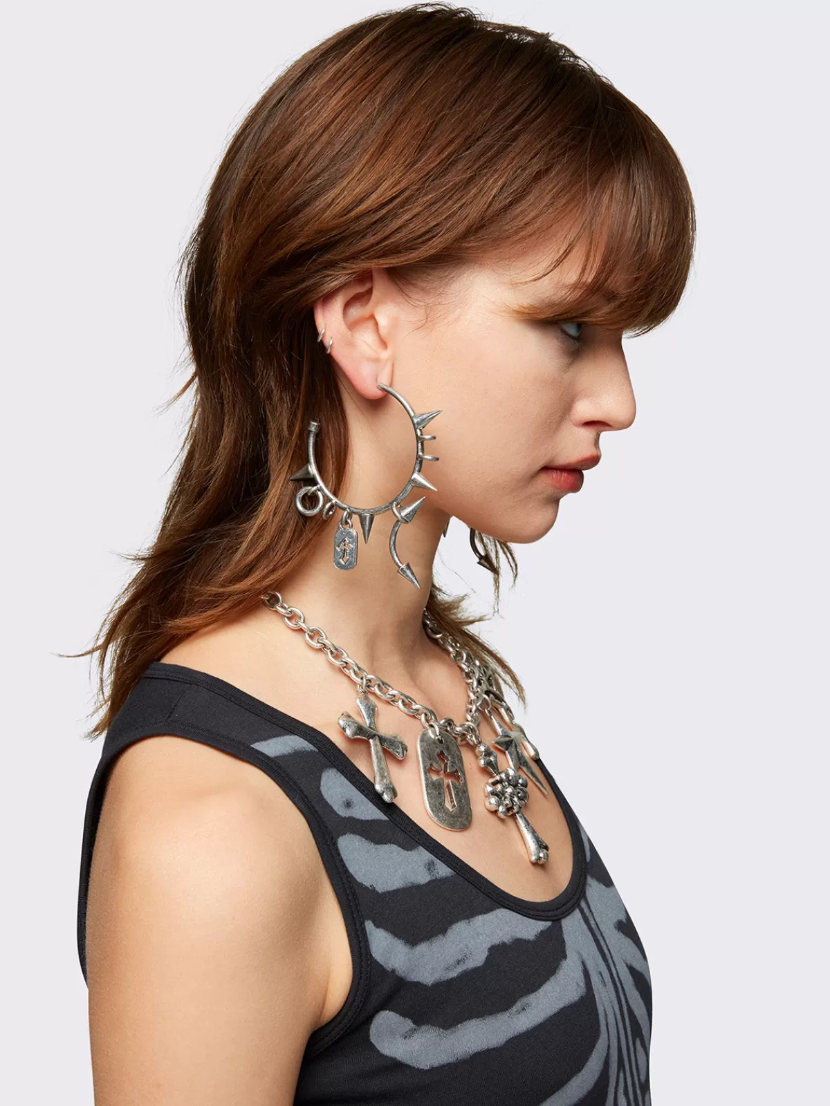 Unleash your edge with chunky crosses.Silver chunky charm necklaceCrosses, star and skull pendantsAdjustable lengthLobst…