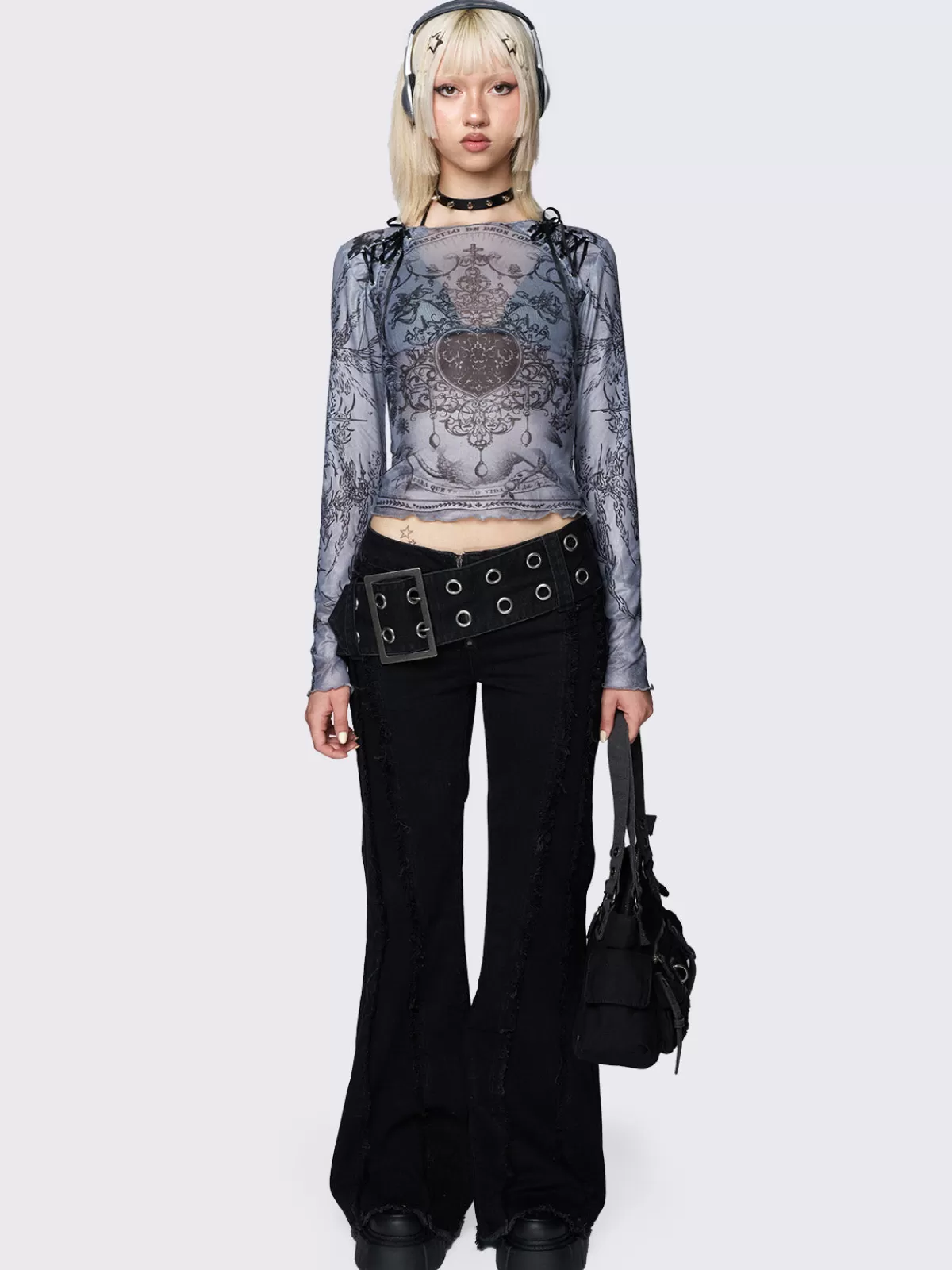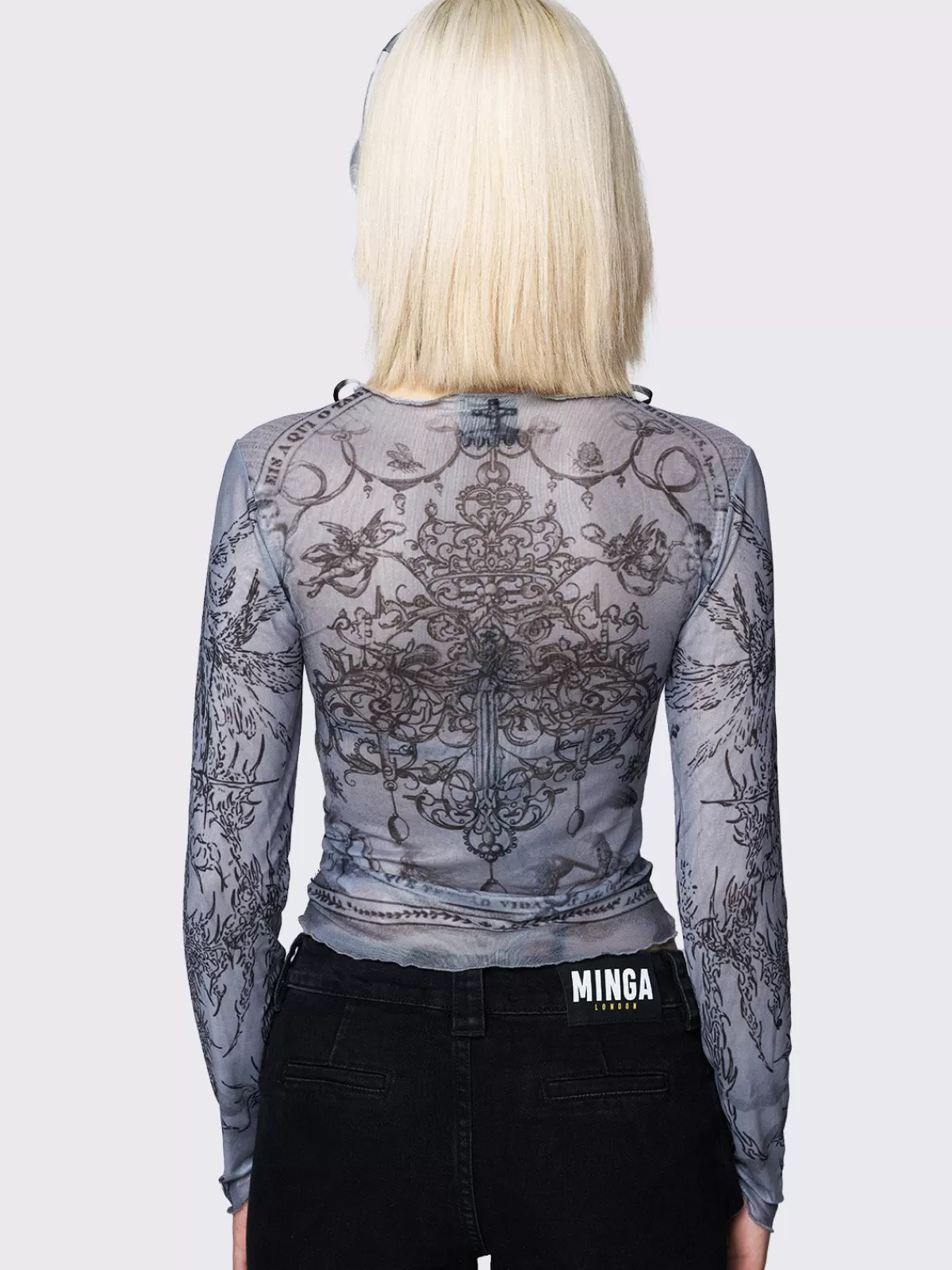 - Printed mesh crop top in grey