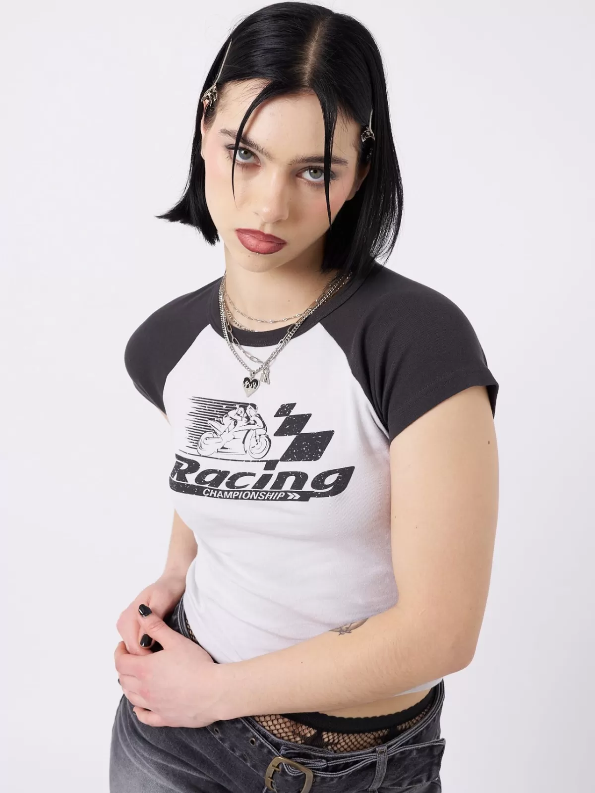 Running to the coffee shop, my fave’ type of race. Baseball tee in faded black and whiteContrast raglan sleevesRacing…