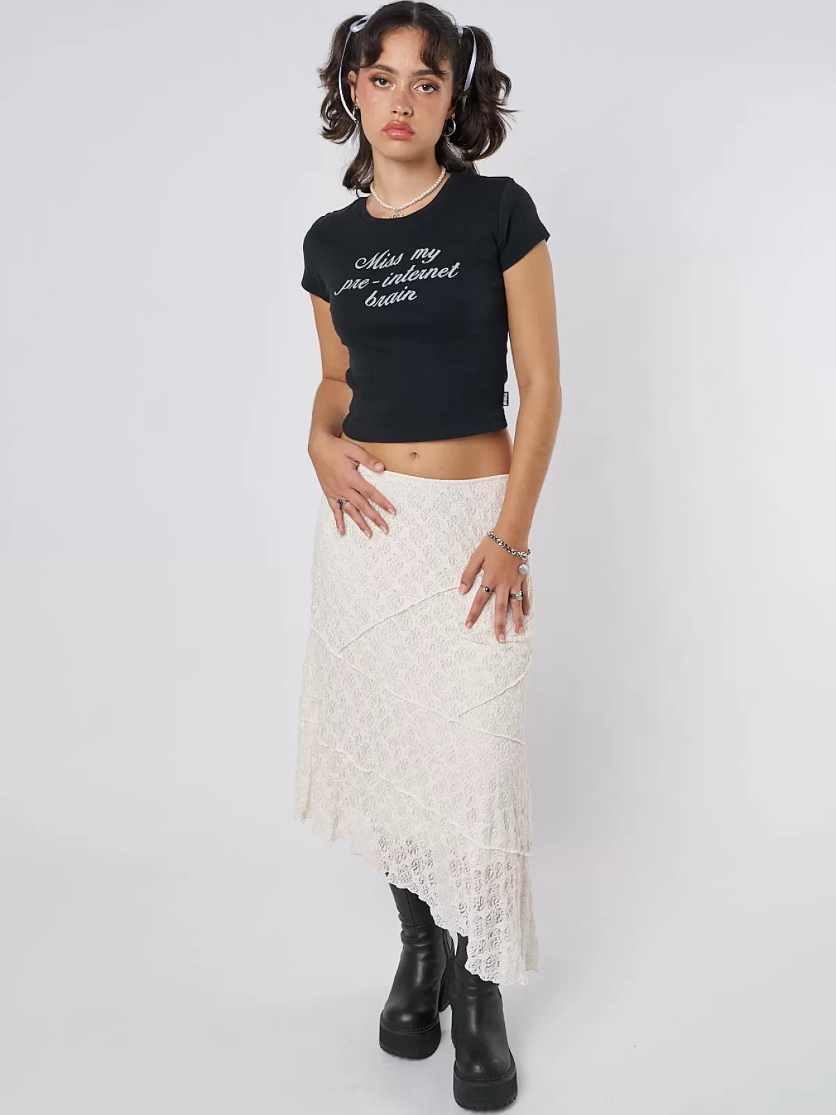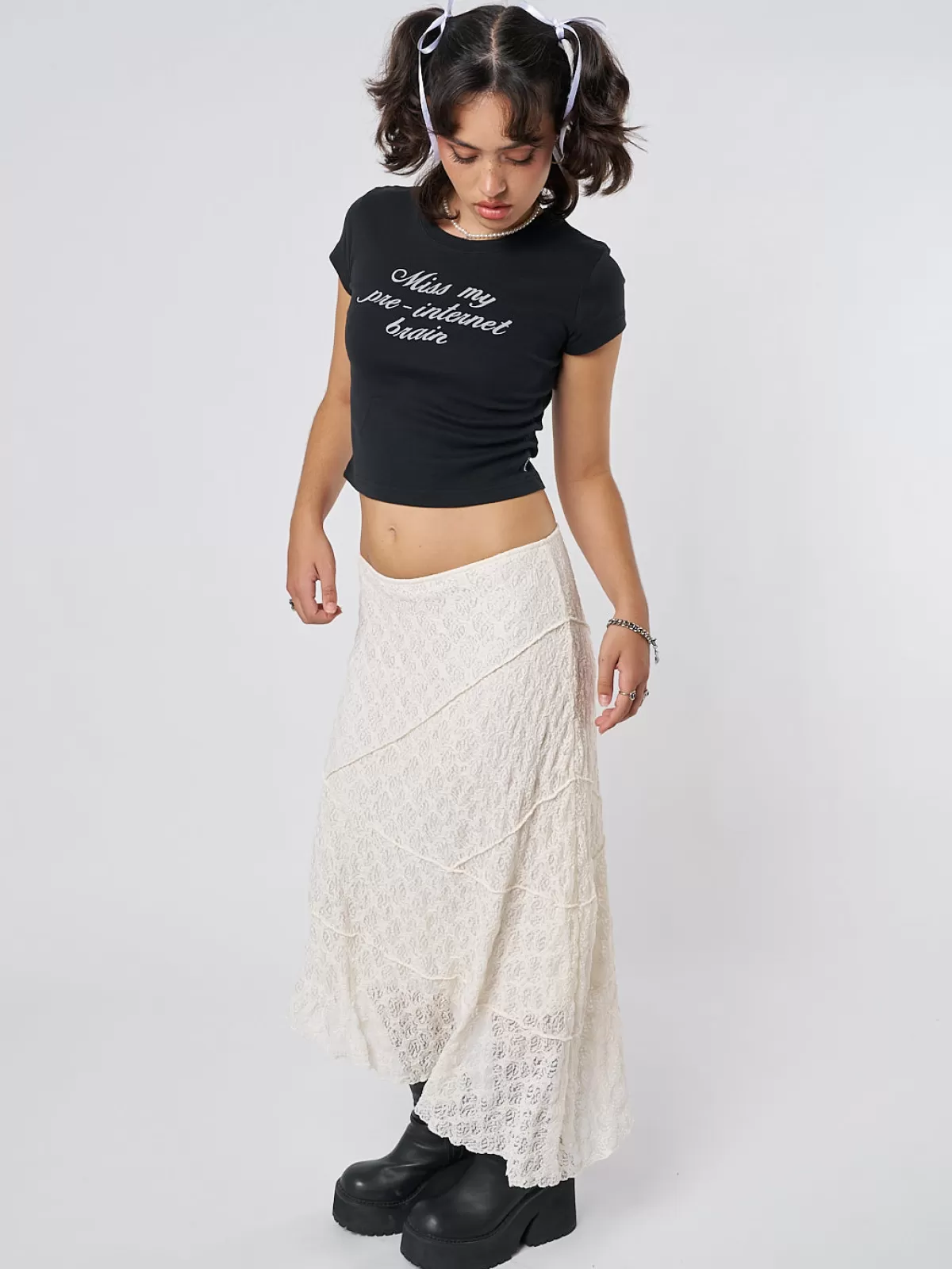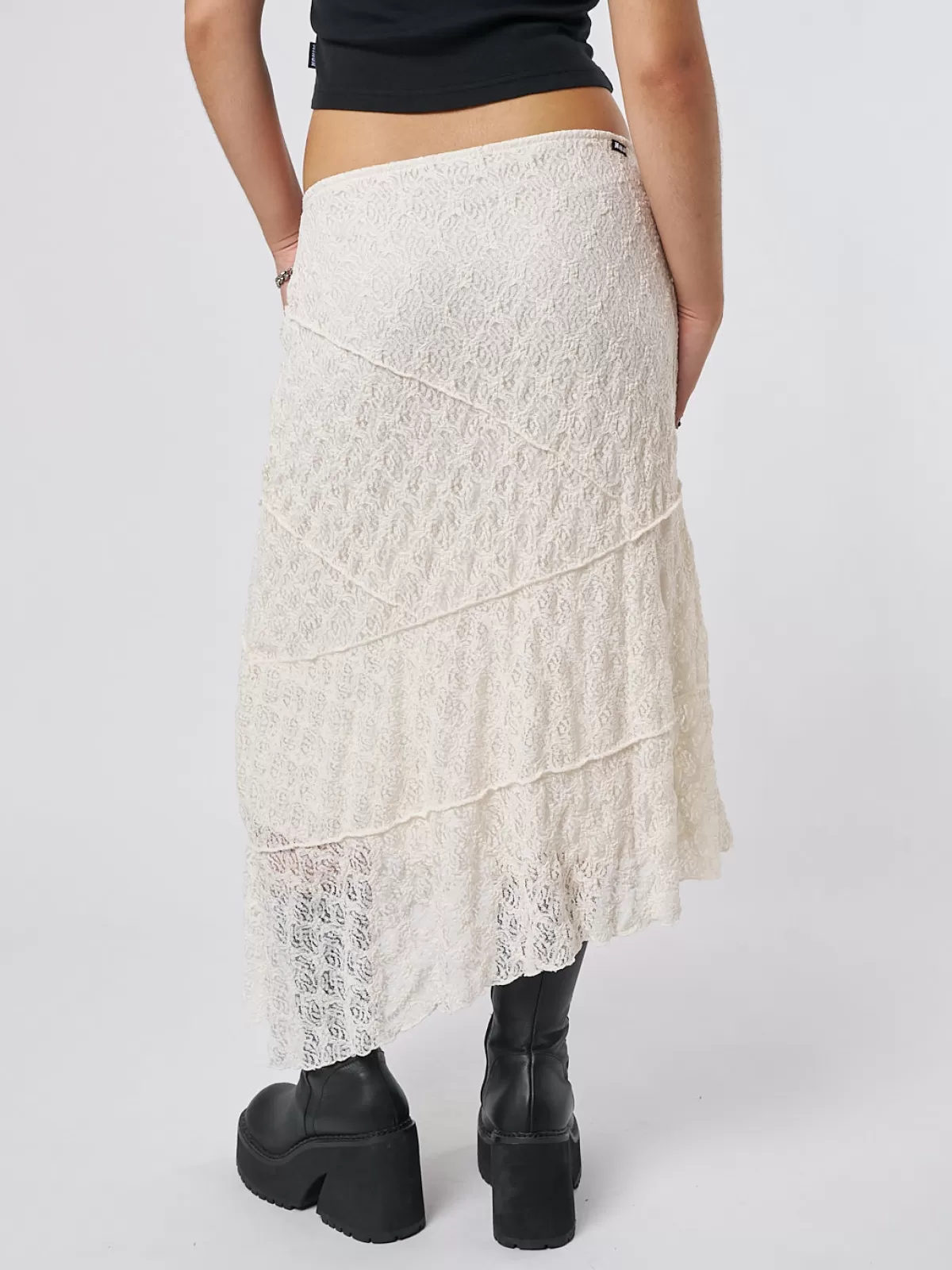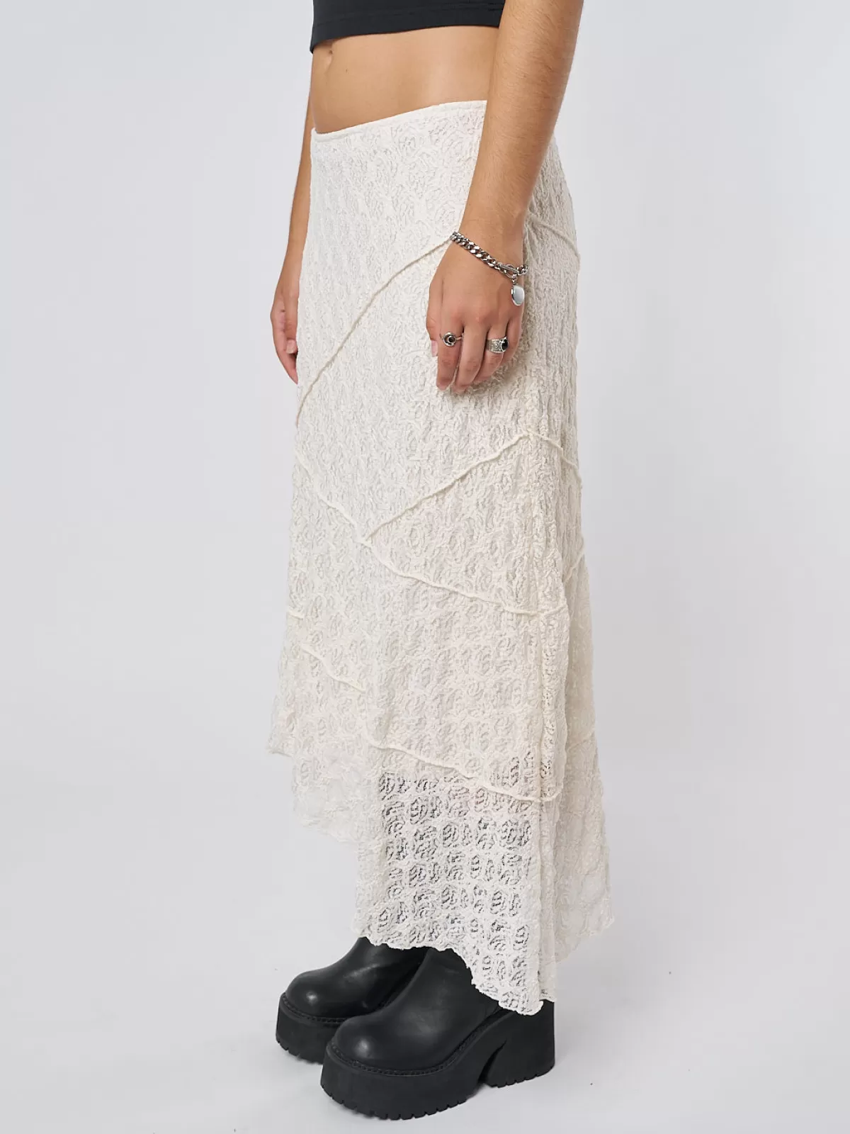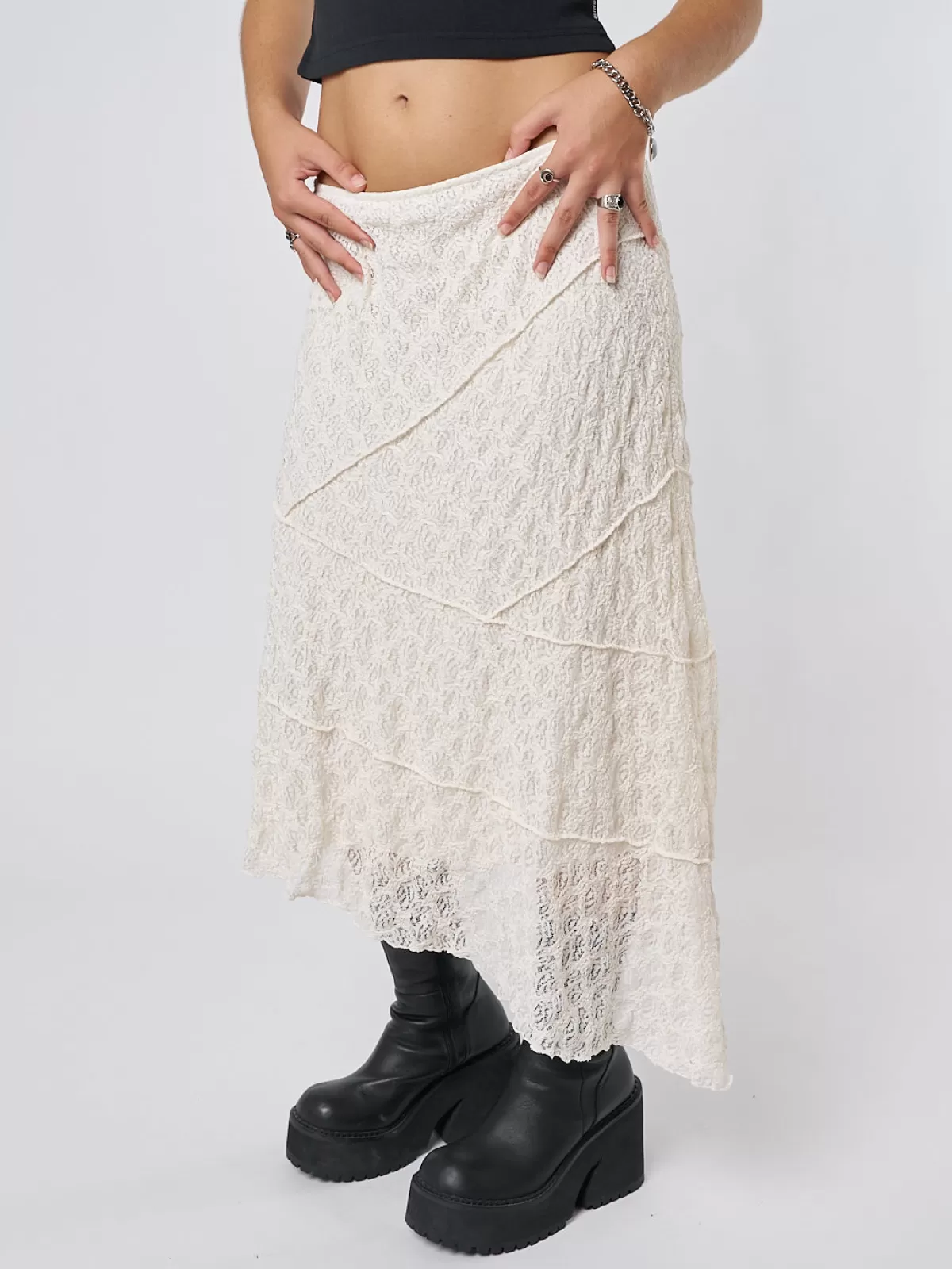 Dreamy lace silhouettes ?Boho lace midi skirt in creamAll over floral laceExposed seams detailsAsymmetrical lengthReg…