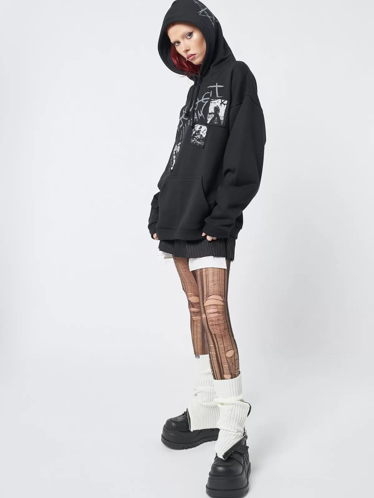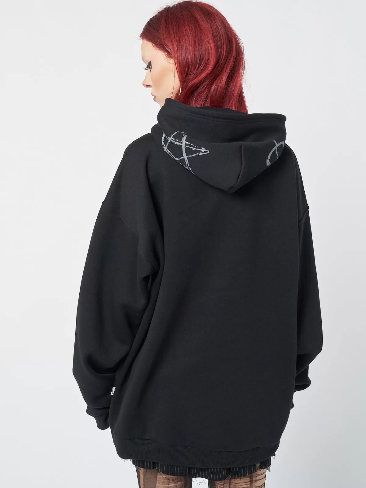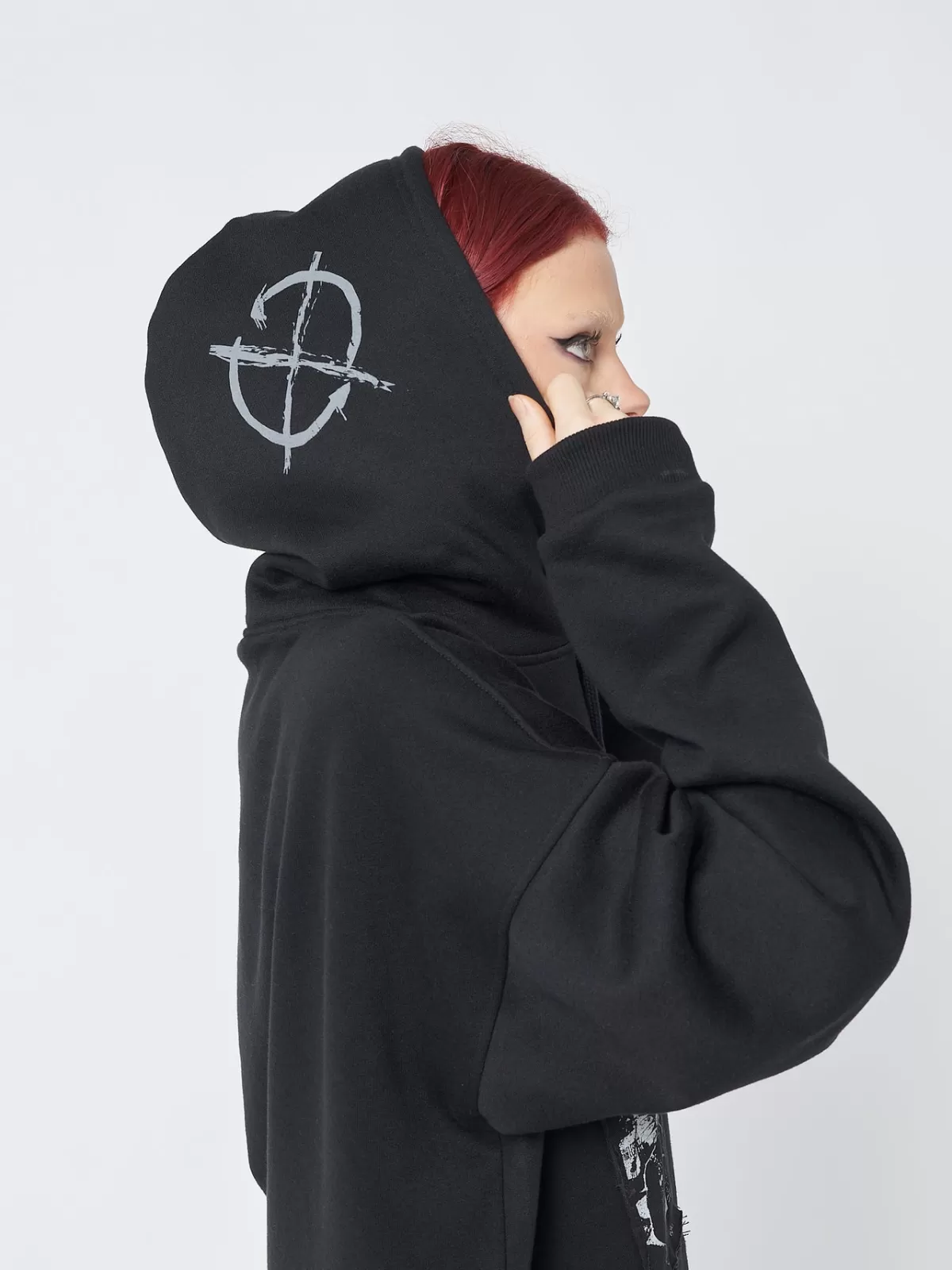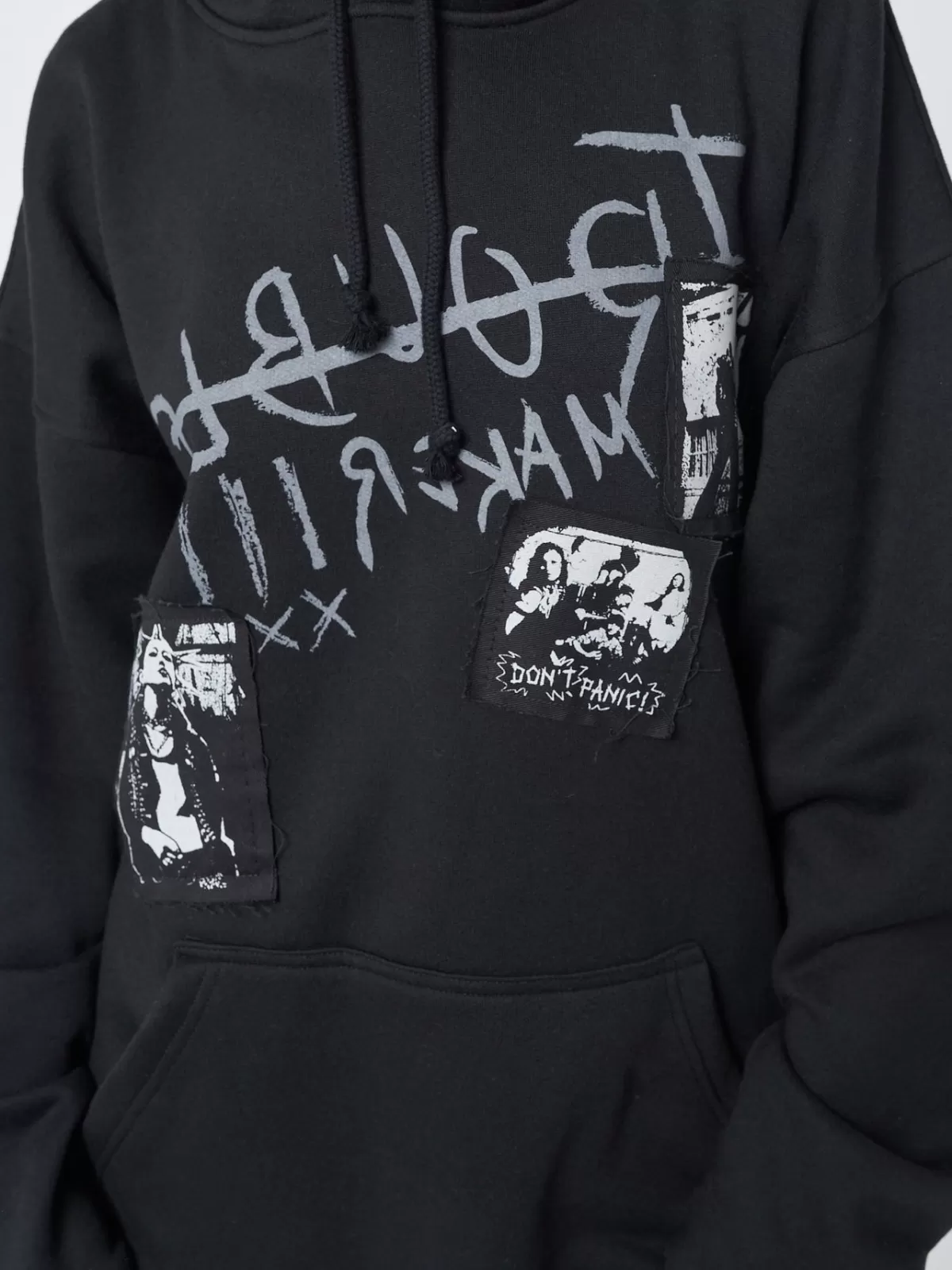Loading: big hoodie energy. Oversized hoodie in black Troublemaker front graphic printPunk patches and signsDrawstring…